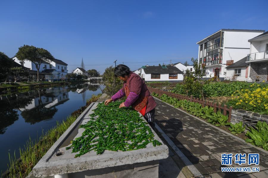 3月10日,嘉善县姚庄镇横港村的村民在河边晾晒蔬菜。横港村是“桃源渔歌风景线”上的美丽乡村精品村之一,近年来先后完成了入口美化提升、河道两岸景观道打造、污水处理设施提升、道路亮化等基础性工程,整村环境面貌有了显著提升。