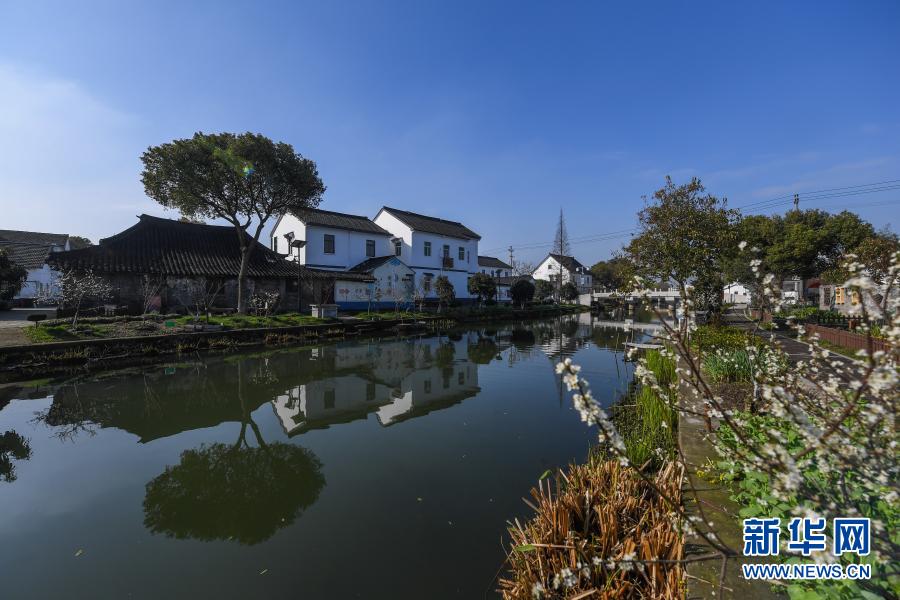 3月10日拍摄的嘉善县姚庄镇横港村沿河景观带。横港村是“桃源渔歌风景线”上的美丽乡村精品村之一,近年来先后完成了入口美化提升、河道两岸景观道打造、污水处理设施提升、道路亮化等基础性工程,整村环境面貌有了显著提升。