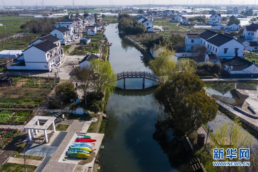 3月10日,空中俯瞰嘉善县姚庄镇横港村(无人机照片)。横港村是“桃源渔歌风景线”上的美丽乡村精品村之一,近年来先后完成了入口美化提升、河道两岸景观道打造、污水处理设施提升、道路亮化等基础性工程,整村环境面貌有了显著提升。