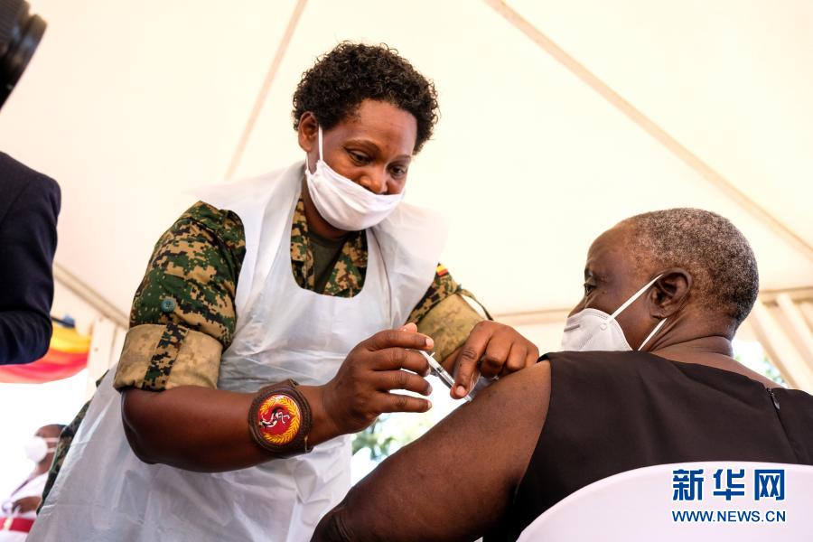 乌干达新冠疫苗接种工作于10日启动,优先为医护工作者、教师、老人等群体免费接种。新华社发(哈贾拉摄)