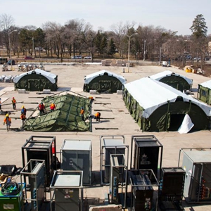 多伦多日前开始建造首家移动医院,以应对新冠疫情造成的医院床位紧张。加拿大政府曾于1月承诺在安大略省大多伦多地区建造两家移动医院,预计可提供医疗床位约200张。新华社发(邹峥摄)