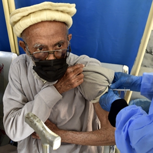 3月10日,一名老年人在巴基斯坦白沙瓦接种新冠疫苗。