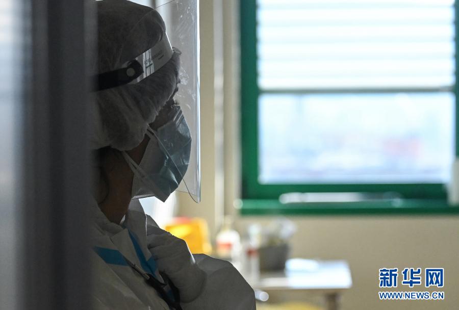 3月10日,医务人员在意大利博洛尼亚一所医院的新冠隔离区工作。新华社发(贾尼·斯基基摄)