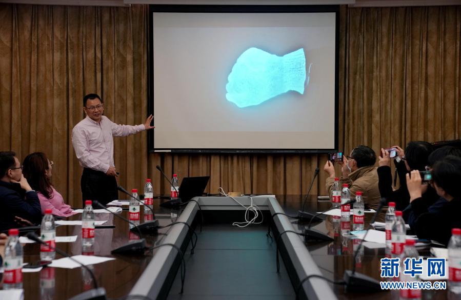 3月10日,复旦大学高分子科学系教授彭慧胜在介绍研究成果。