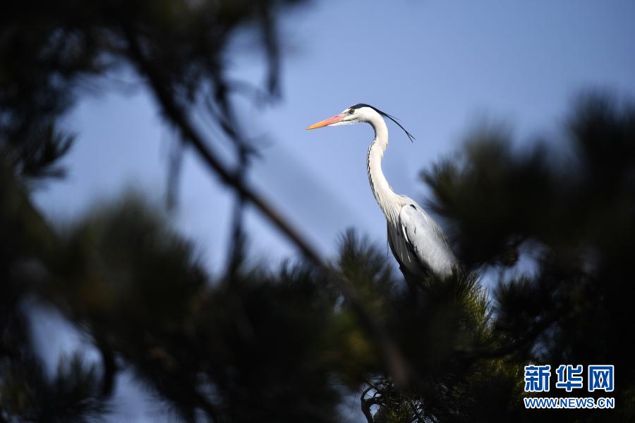 3月11日,在山西省吕梁市方山县积翠乡,苍鹭在林间栖息。