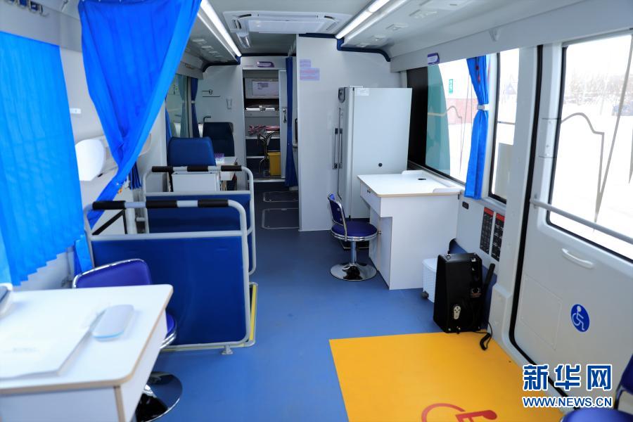 这是3月10日在哈萨克斯坦阿克莫州地方医院拍摄的移动医疗车内景。新华社发(奥斯潘诺夫摄)