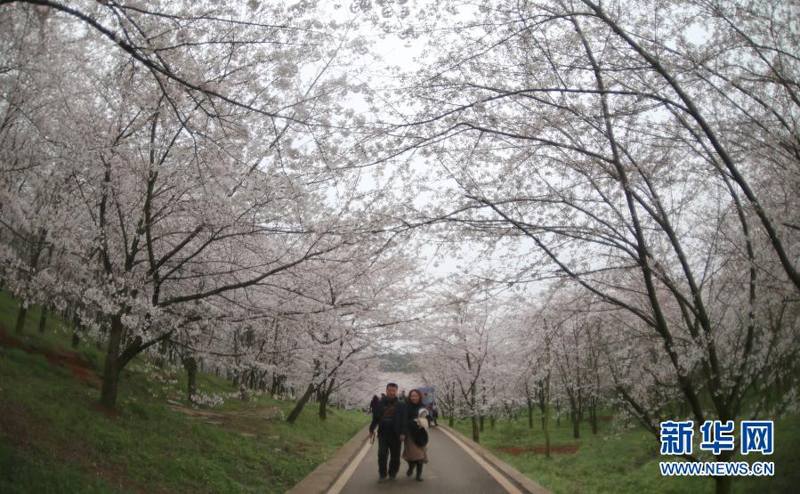 3月11日,游人在贵州省贵安新区的樱花园赏花游玩。
