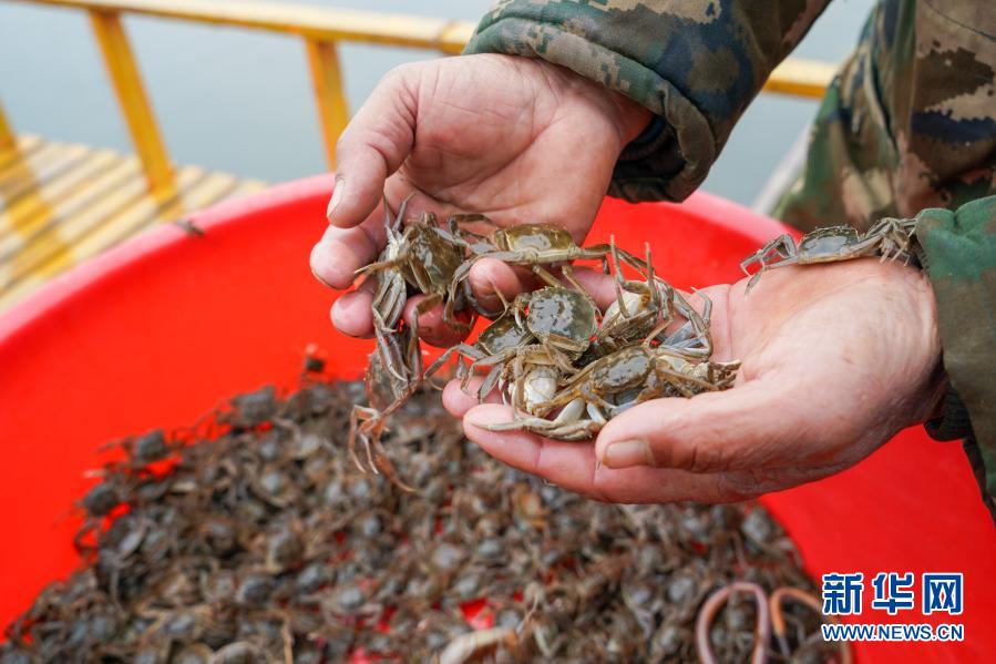 当日,在江苏省徐州市睢宁县魏集镇稻蟹种养基地,当地蟹农抓紧农时投放蟹苗。近年来,江苏省睢宁县因地制宜,推广稻鱼、稻虾、稻蟹、稻鳅等混合种养,促进乡村振兴。