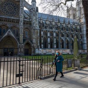 3月11日,一名女子从英国伦敦的威斯敏斯特教堂改造的新冠疫苗接种中心外走过。