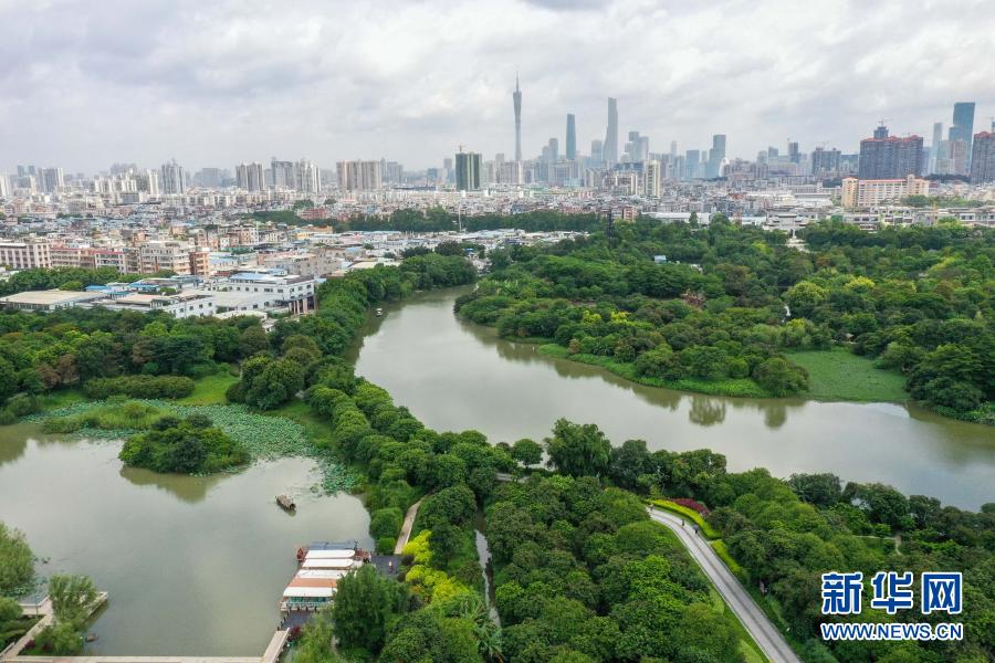 广州海珠国家湿地公园(2020年6月3日摄,无人机照片)。海珠湿地位于广州市中心城区,总面积约1100公顷,被誉为广州“绿心”,曾获评“2016年度中国人居环境范例奖”。