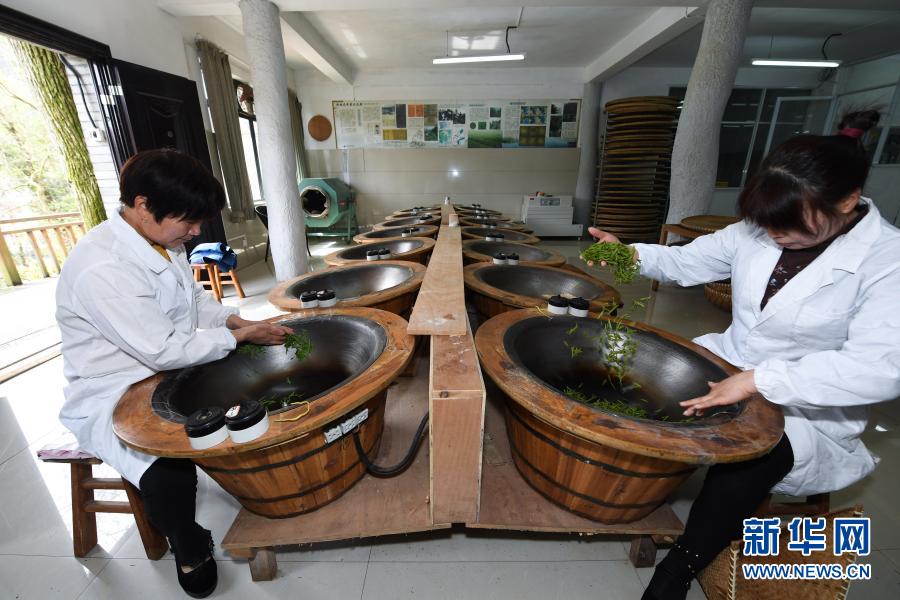 3月12日,在杭州市西湖风景名胜区满觉陇村的中国茶叶博物馆满觉陇炒茶中心内,茶农在手工炒制西湖龙井茶。