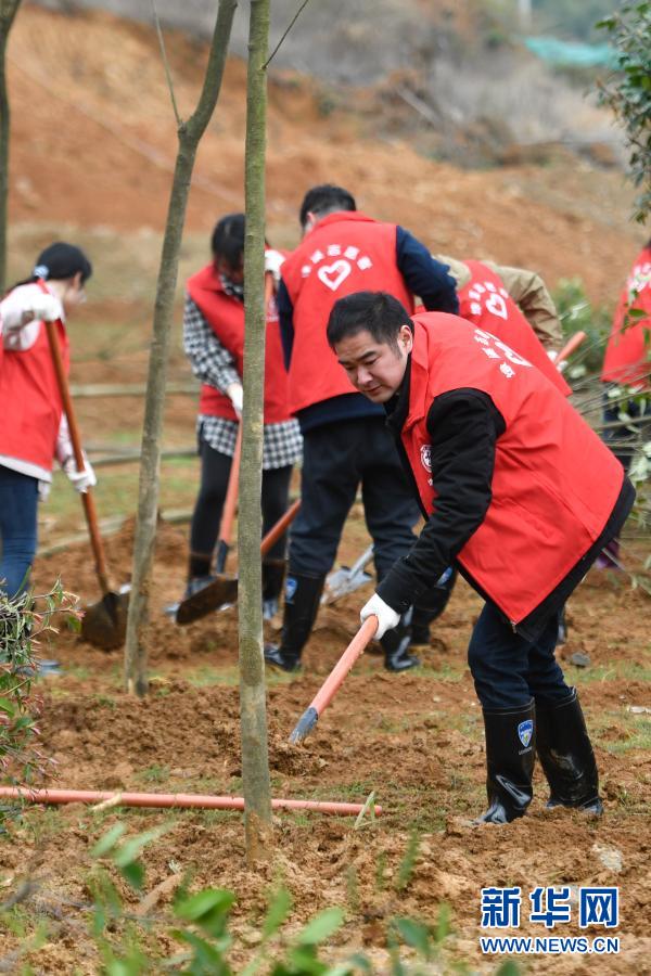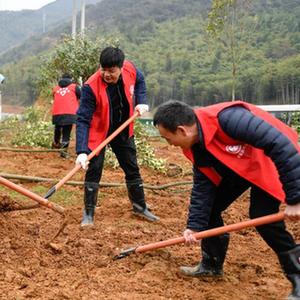 3月12日,吴兴区埭溪镇党员志愿者在植树。