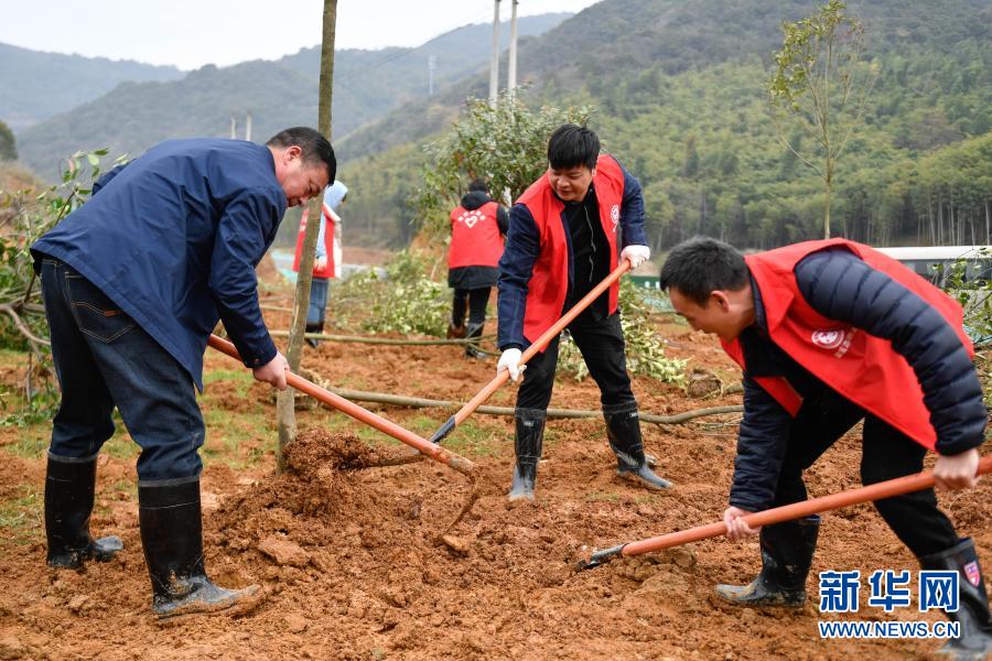 3月12日,吴兴区埭溪镇党员志愿者在植树。