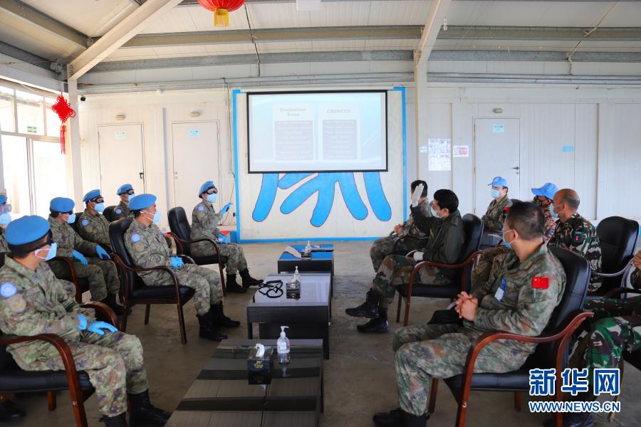 3月11日,在黎巴嫩南部纳巴提耶省布拉特村,中国维和医疗分队向联合国驻黎巴嫩临时部队(联黎部队)司令部检查评估小组作评估简报。新华社发(雷洋摄)