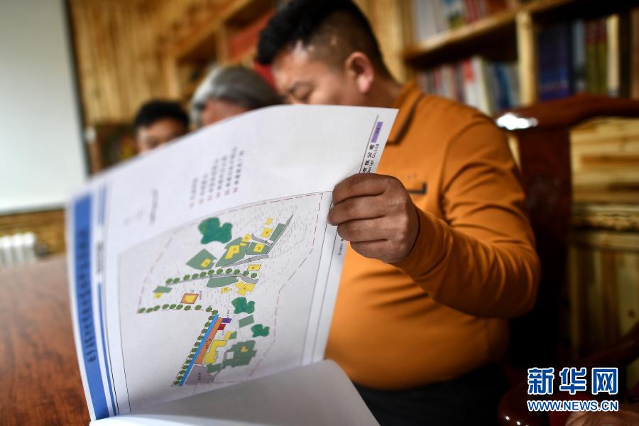 3月10日,尼玛在玉树古建筑保护协会办公室和同事讨论古村落修复规划。新华社记者 张宏祥 摄