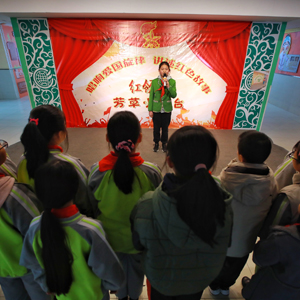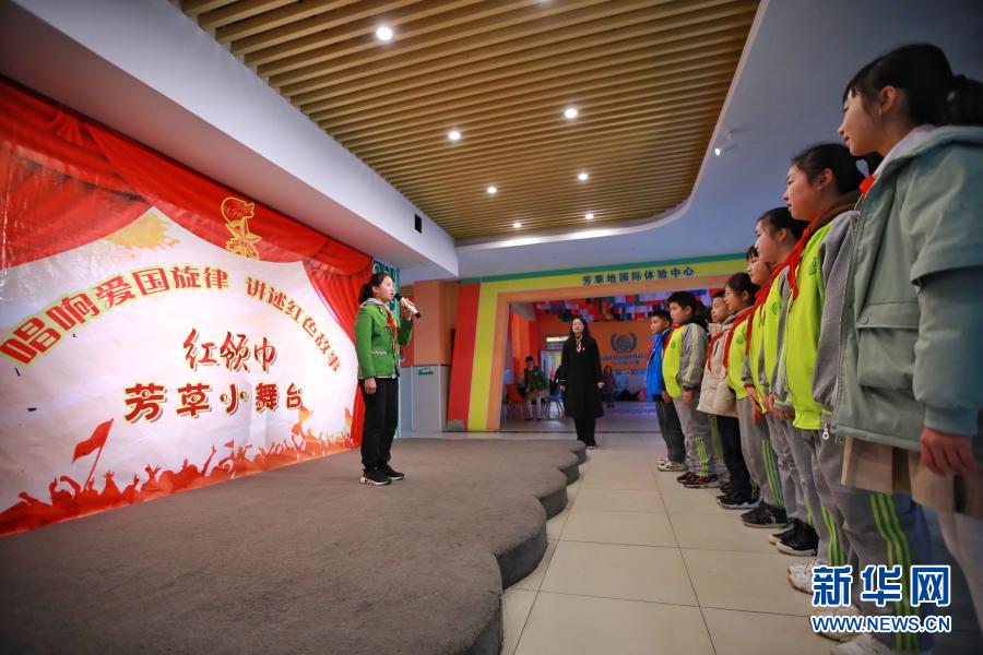 3月12日,贵阳市云岩区芳草地国际学校学生在讲述红色故事。