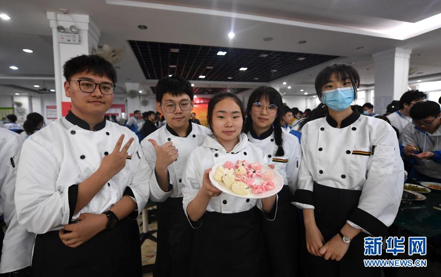 3月12日,天津中学学生在展示厨艺比赛中制作的面食。新华社记者 赵子硕 摄