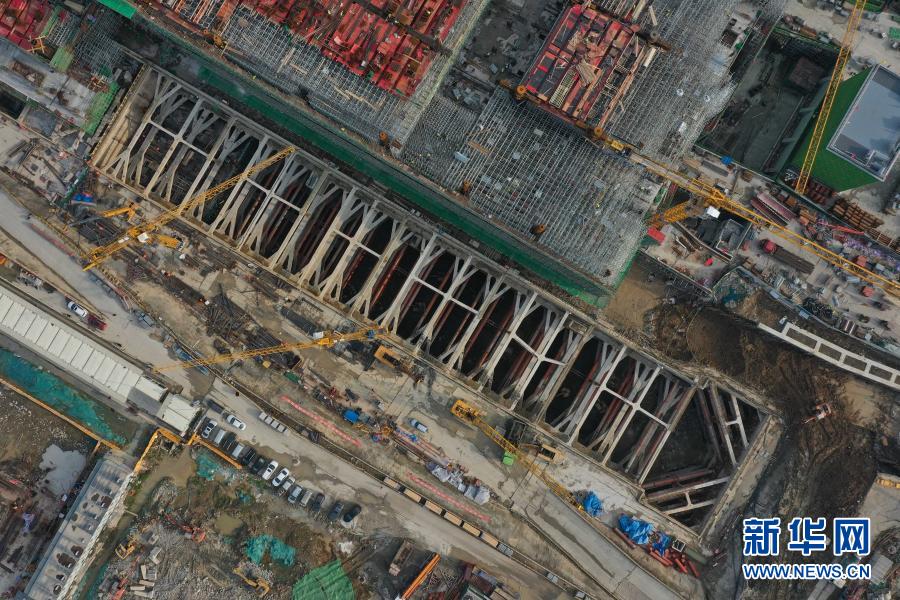 这是3月12日拍摄的建设中的杭州西站枢纽地铁四个象限工程的一处基坑(无人机照片)。据了解,地铁四个象限工程正在加快推进主体结构施工。新华社记者 黄宗治 摄