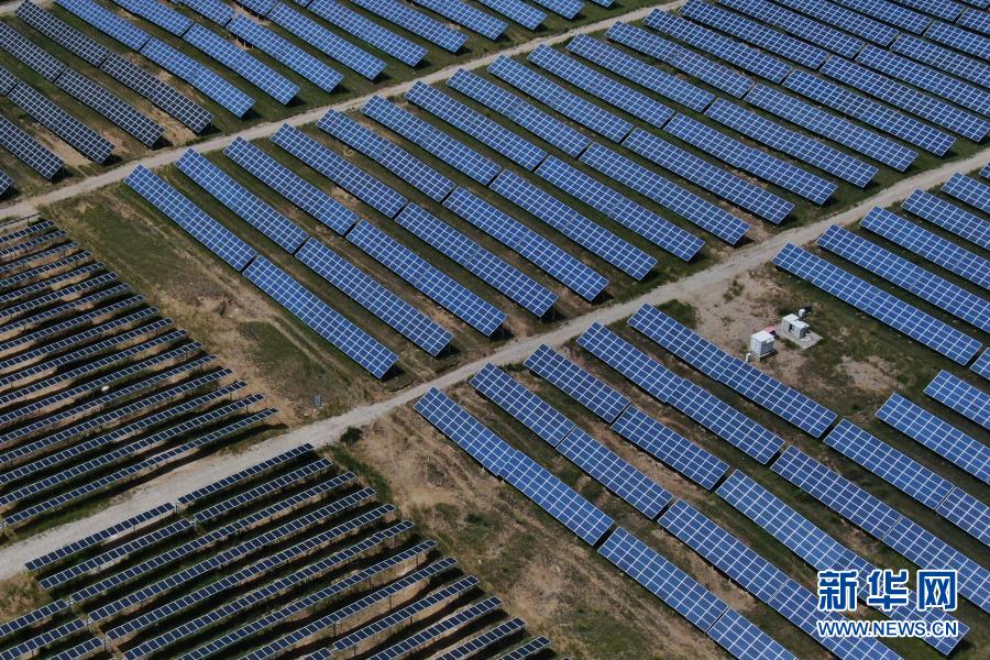 这是2020年8月17日在青海省海南藏族自治州共和县塔拉滩绿色产业发展园区拍摄的光伏电站(无人机照片)。新华社记者 张龙 摄