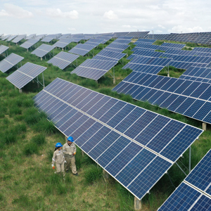 这是青海省海南藏族自治州共和县境内的大唐青海公司新能源分公司光伏电站一角(2020年7月8日摄,无人机照片)。新华社记者 张宏祥 摄