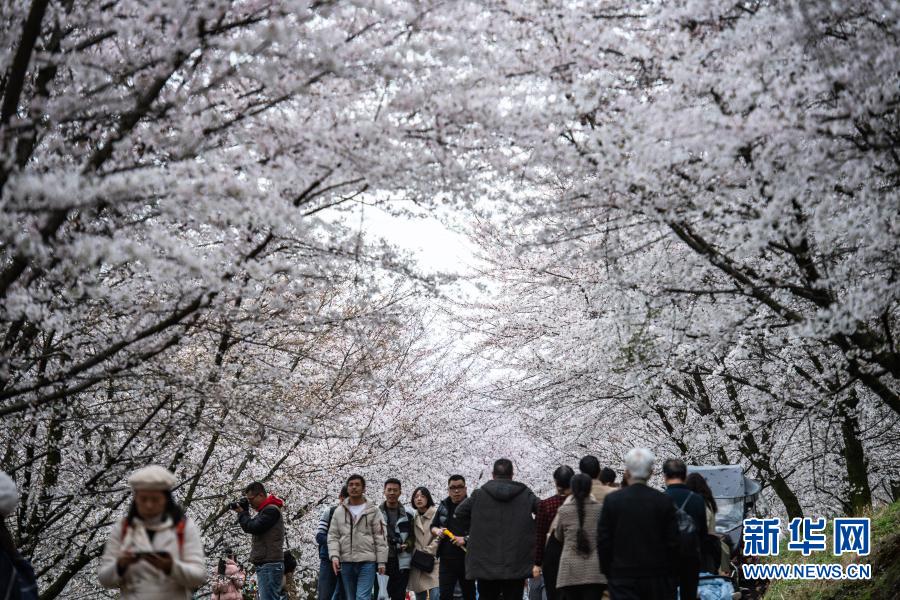 游客在贵州省贵安新区的樱花观光园内赏花(3月12日摄)。