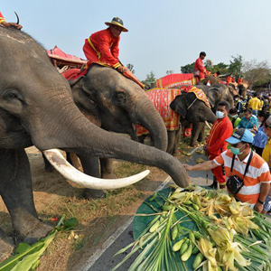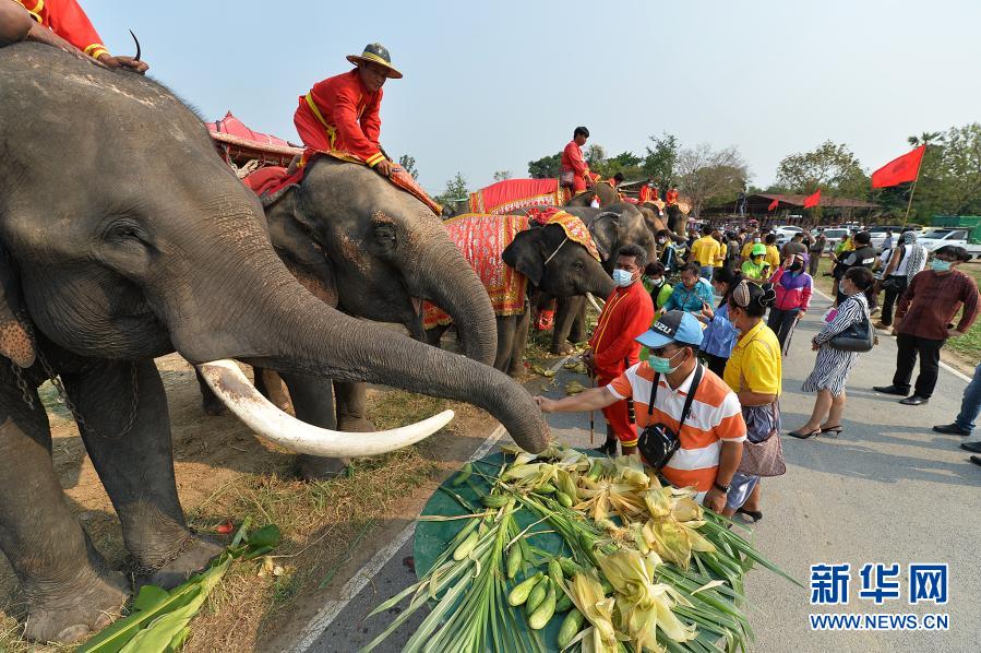 当日,泰国大城府举办活动,庆祝一年一度的大象日。