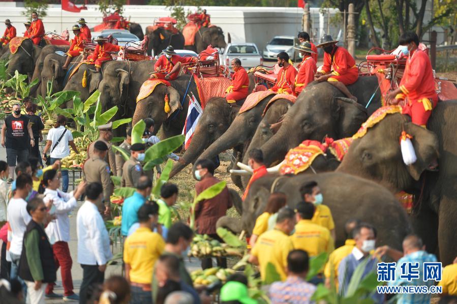 当日,泰国大城府举办活动,庆祝一年一度的大象日。