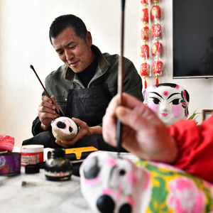 3月13日,在山东省滨州市惠民县皂户李镇河南张村,惠民泥塑非遗传承人张凯的爱人在做“泥娃娃”。新华社记者 郭绪雷 摄
