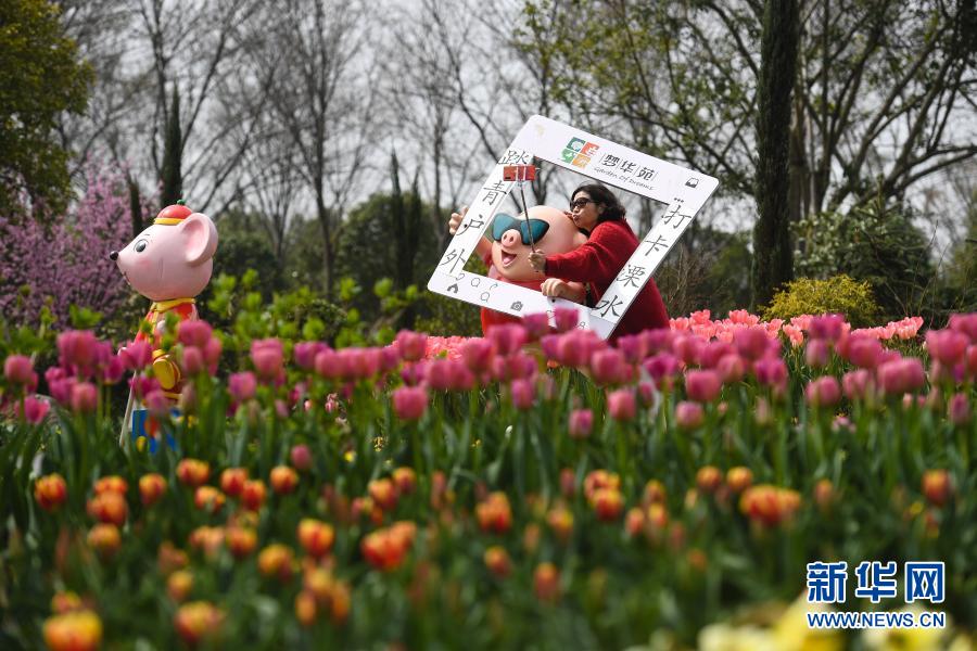 3月13日,游人在南京市溧水区梦华苑自拍留念。