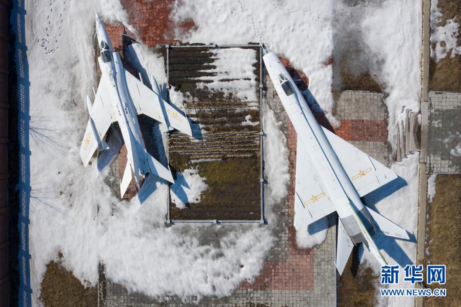 这是3月13日在东北老航校纪念馆拍摄的强-5强击机(左)和歼-8E战斗机(无人机照片)。