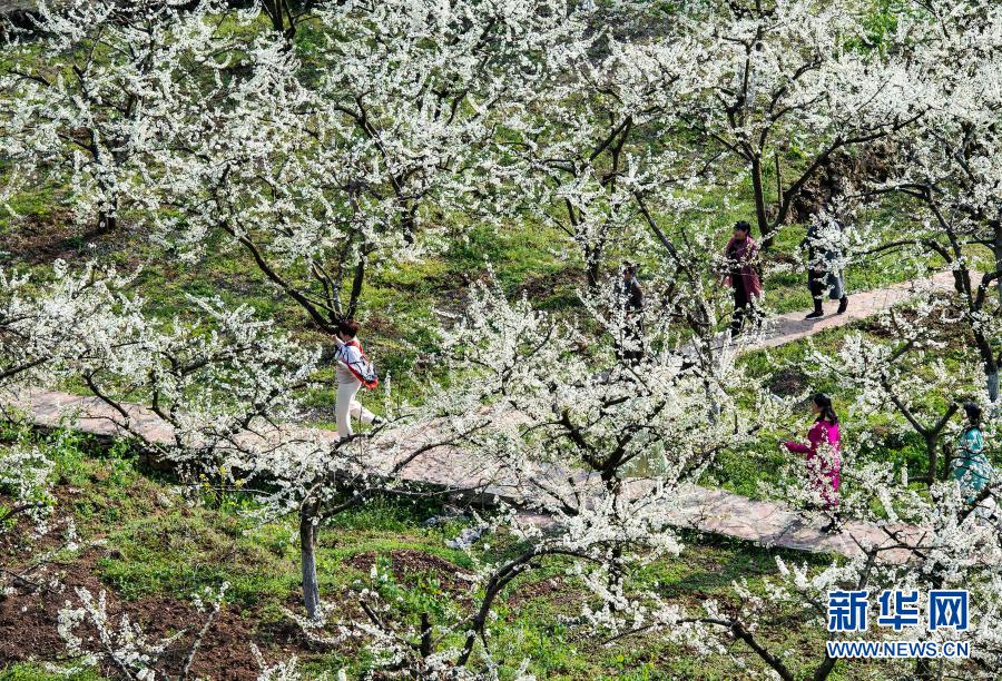 3月13日,游客在秭归县沙镇溪镇高潮村踏青赏花。新华社发(郑家裕 摄)