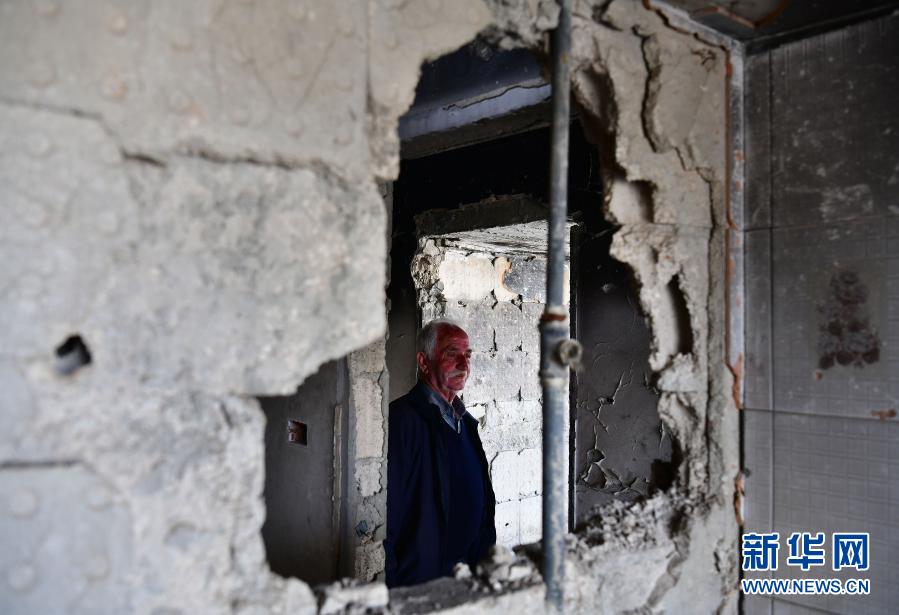 3月11日,叙利亚霍姆斯老人纳伊姆·路易斯站在被战火破坏的房屋中。