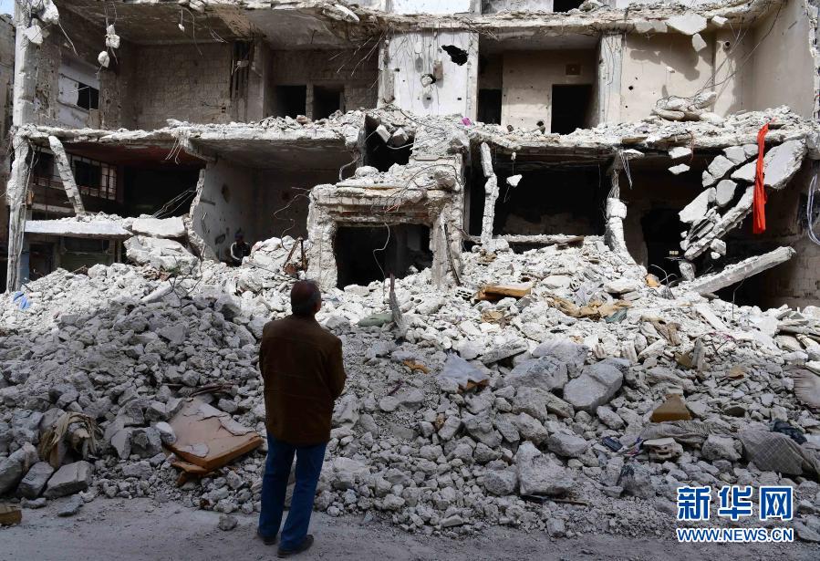 3月11日,叙利亚霍姆斯老人哈迪·古松站在被炸毁的自家房屋前。