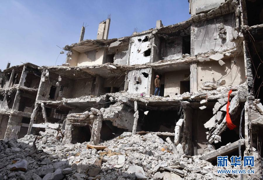 3月11日,叙利亚霍姆斯老人哈迪·古松站在被炸毁的自家房屋里。