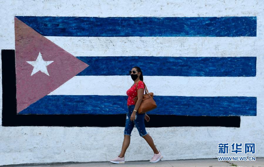 3月11日,一名女子在古巴首都哈瓦那戴口罩出行。据古巴公共卫生部公布的数据,截至13日,古巴累计确诊新冠病例超六万例。新华社发(华金·埃尔南德斯 摄)