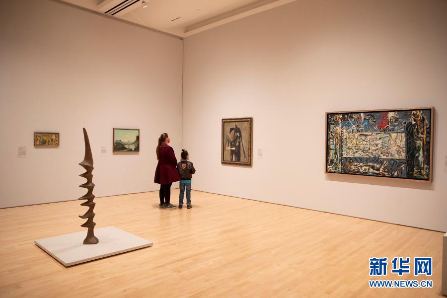 3月13日,观众在美国旧金山现代艺术博物馆参观。旧金山目前已从美国加州四级防疫层级中最高的“紫色”降为“红色”。电影院、博物馆和健身房等在控制客流的前提下重新开放。新华社发(李建国摄)