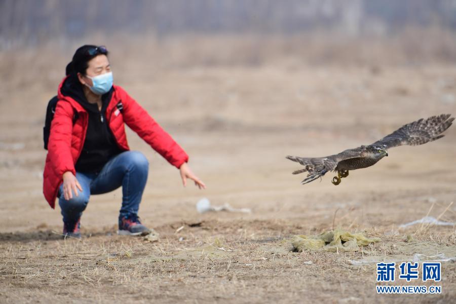 3月14日,沈阳猛禽救助中心志愿者将救助的苍鹰进行放飞。