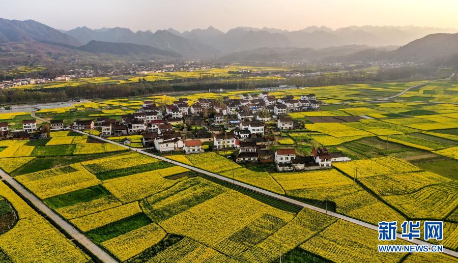 进入3月,陕西省汉中市满眼春色,盛开的油菜花与点缀在山野间的樱桃花、梨花等,将汉中大地装扮成花的海洋。
