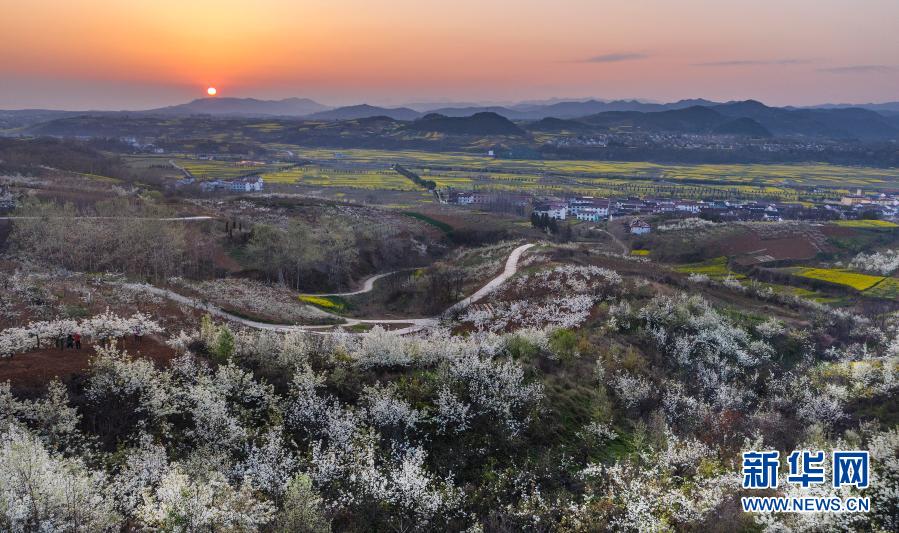 进入3月,陕西省汉中市满眼春色,盛开的油菜花与点缀在山野间的樱桃花、梨花等,将汉中大地装扮成花的海洋。