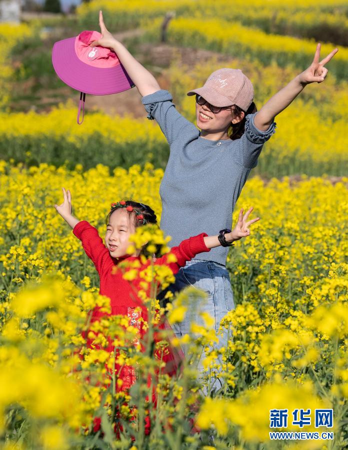 进入3月,陕西省汉中市满眼春色,盛开的油菜花与点缀在山野间的樱桃花、梨花等,将汉中大地装扮成花的海洋。