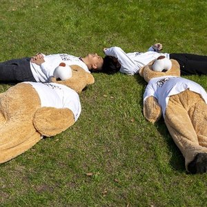 3月14日,参加活动的数学爱好者摆出“π”的形状。