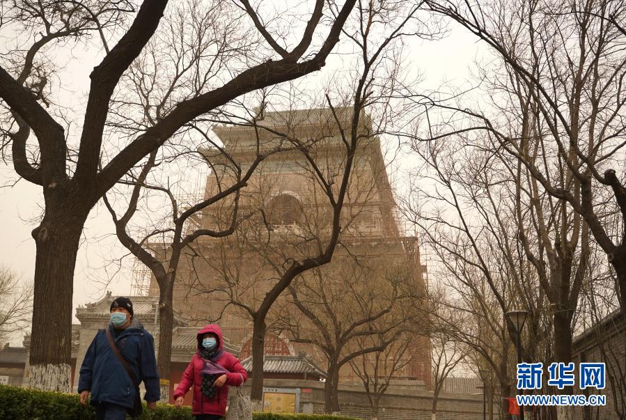 3月15日,市民从北京钟楼下走过。当日,北京市遭遇沙尘天气。新华社记者 贾浩成 摄