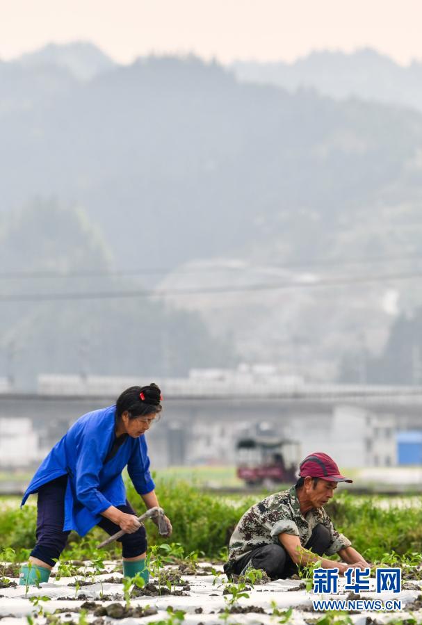 连日来,贵州省黔东南苗族侗族自治州榕江县车江坝区的农民们忙着移栽辣椒苗、修整大棚设施、抢收菜薹,积极开展备耕春种活动。