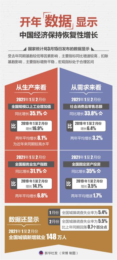 图表:开年数据显示中国经济保持恢复性增长。新华社发 宋博 制图