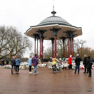 3月15日,人们在英国伦敦西南部的克拉珀姆公共绿地的鲜花旁悼念遇害女子萨拉·埃弗拉德。