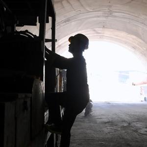 3月16日,工程车辆在福州市工业北路文林山隧道内施工。