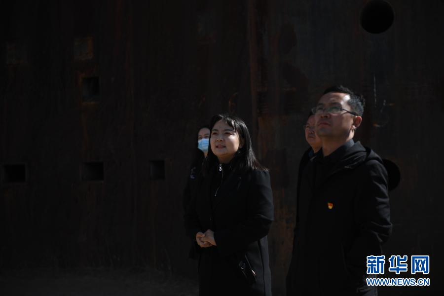 3月10日,孙晓晓(前排左一)为游客讲解二分厂历史。新华社记者 张曼怡 摄