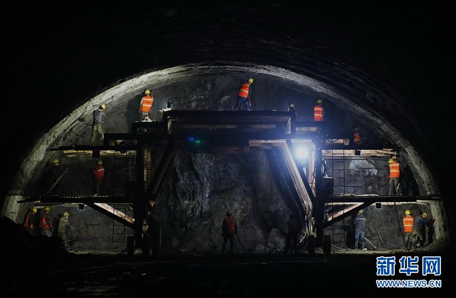 3月16日,工人在迁安市大五里乡境内的京秦高速公路遵(遵化)秦(秦皇岛)段干柴峪隧道建设工地施工。新华社记者 杨世尧 摄