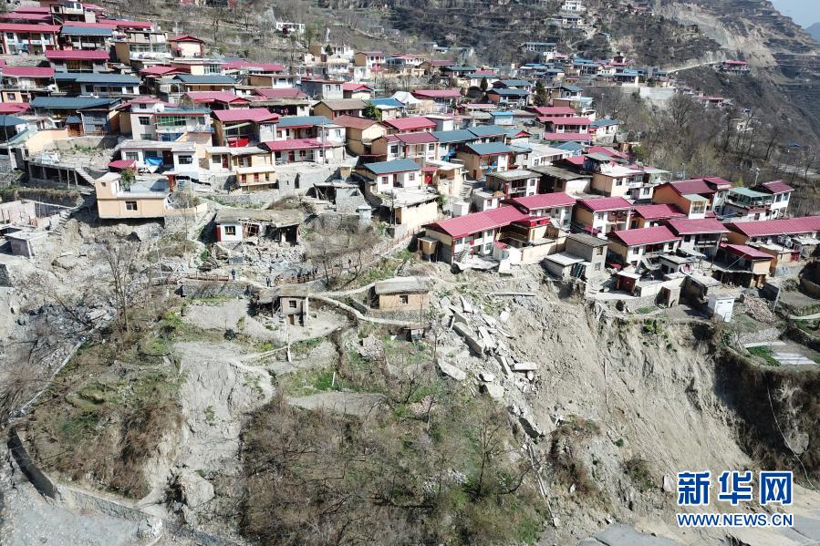 这是3月16日在舟曲县果耶镇磨里村拍摄的滑坡中受损的民房(无人机照片)。新华社记者 范培珅 摄