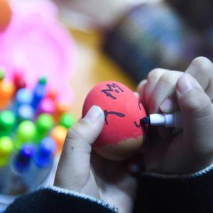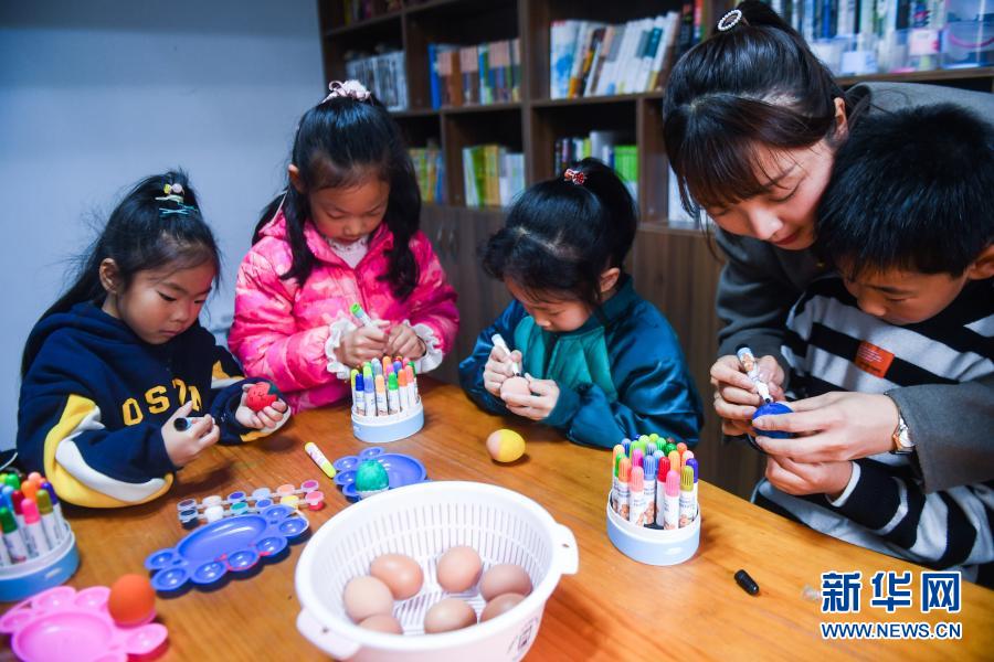 3月17日,孩子们在祥和社区党群服务中心内绘制彩蛋。
